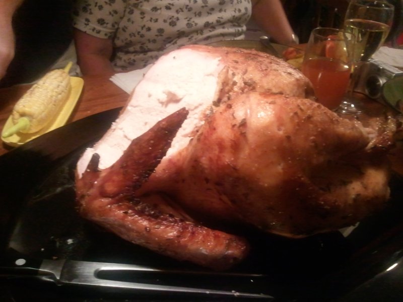 Menu was simple. Turkey. Fingerling potatoes. Heritage carrots. Corn on the cob. Pie. I even made caramel drizzle for on the pie. We're having it all again tomorrow!